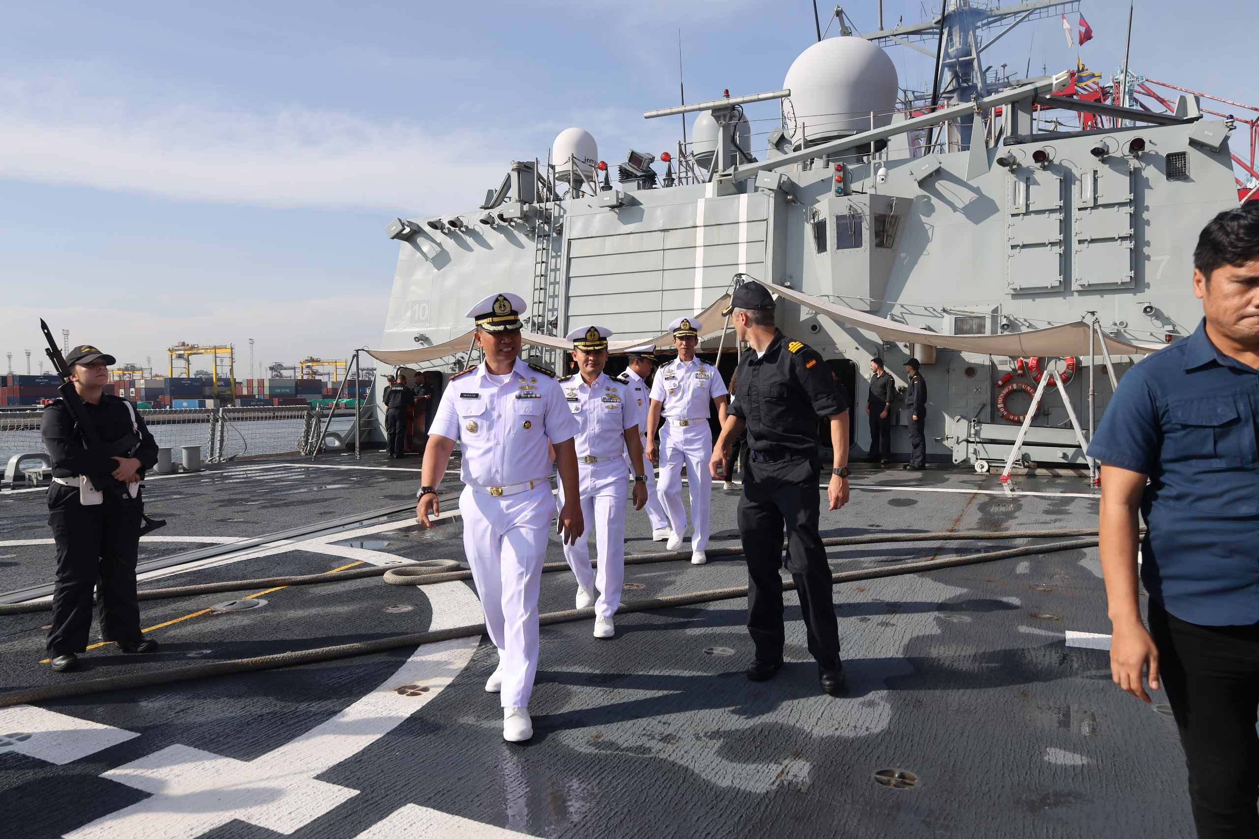 Jakarta, 1 Juli 2025, Bertempat di Dermaga 300 Tanjung Priok, Jakarta Utara, Komandan Lantamal III Laksamana pertama TNI Uki Prasetia, S.T., M.M. yang diwakili oleh Kadiskes Lantamal III Kolonel Laut (K) dr. Etra Ariadno, Sp.PD. melepas keberangkatan kapal perang Spanyol ESPS Mendez Munez (F-104) yang dikomandani oleh Commander Jaime Savador Munoz-Delgado Perez