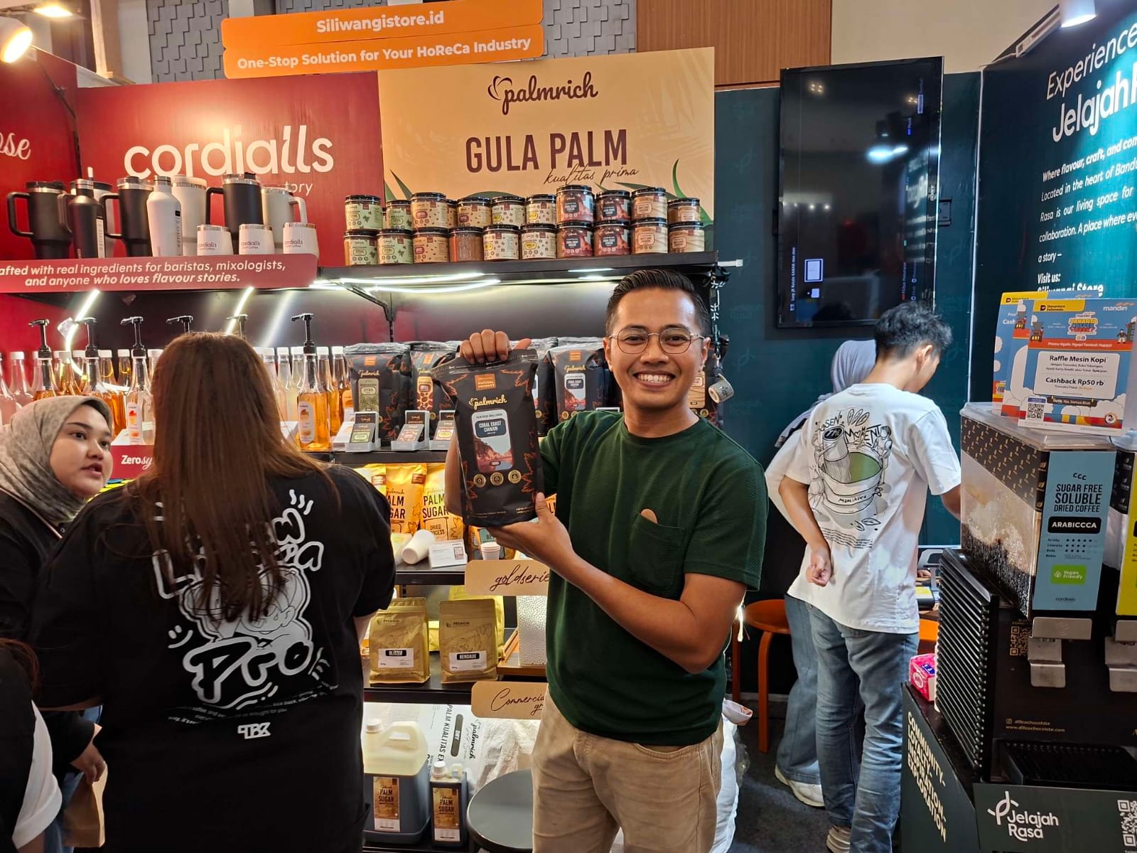 “Selamat siang, kami dari Jelajah Rasa. Tahun ini kami hadir di Jakarta Coffee Week untuk memperkenalkan berbagai varian gula aren premium kami. Kami ingin menunjukkan bahwa gula aren lokal bisa tampil modern, konsisten, dan punya potensi besar untuk industri minuman,” ujar Okky.