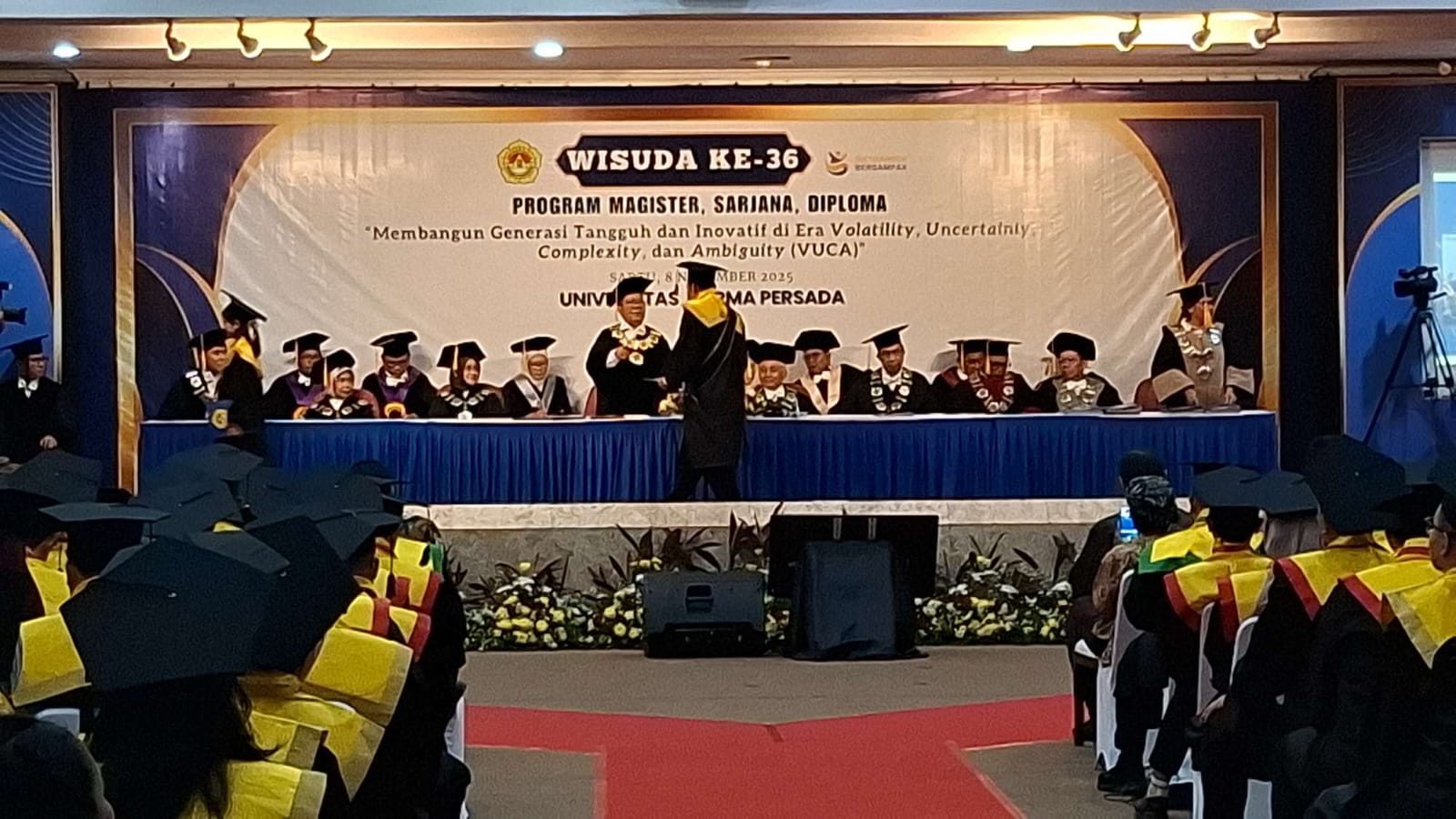 KOMPASSINDO.COM, Jakarta, Universitas Darma Persada (UNSADA) kembali menggelar upacara Wisuda ke-36 bagi Program Magister, Sarjana, dan Diploma pada Sabtu, 8 November 2025, bertempat di Aula Grha Wira Bhakti UNSADA, Jakarta Timur. Upacara wisuda tahun ini diselenggarakan dalam dua sesi, pagi dan siang, dan dihadiri oleh pimpinan Yayasan Melati Sakura, mitra industri, lembaga pendidikan, serta keluarga besar civitas akademika UNSADA.