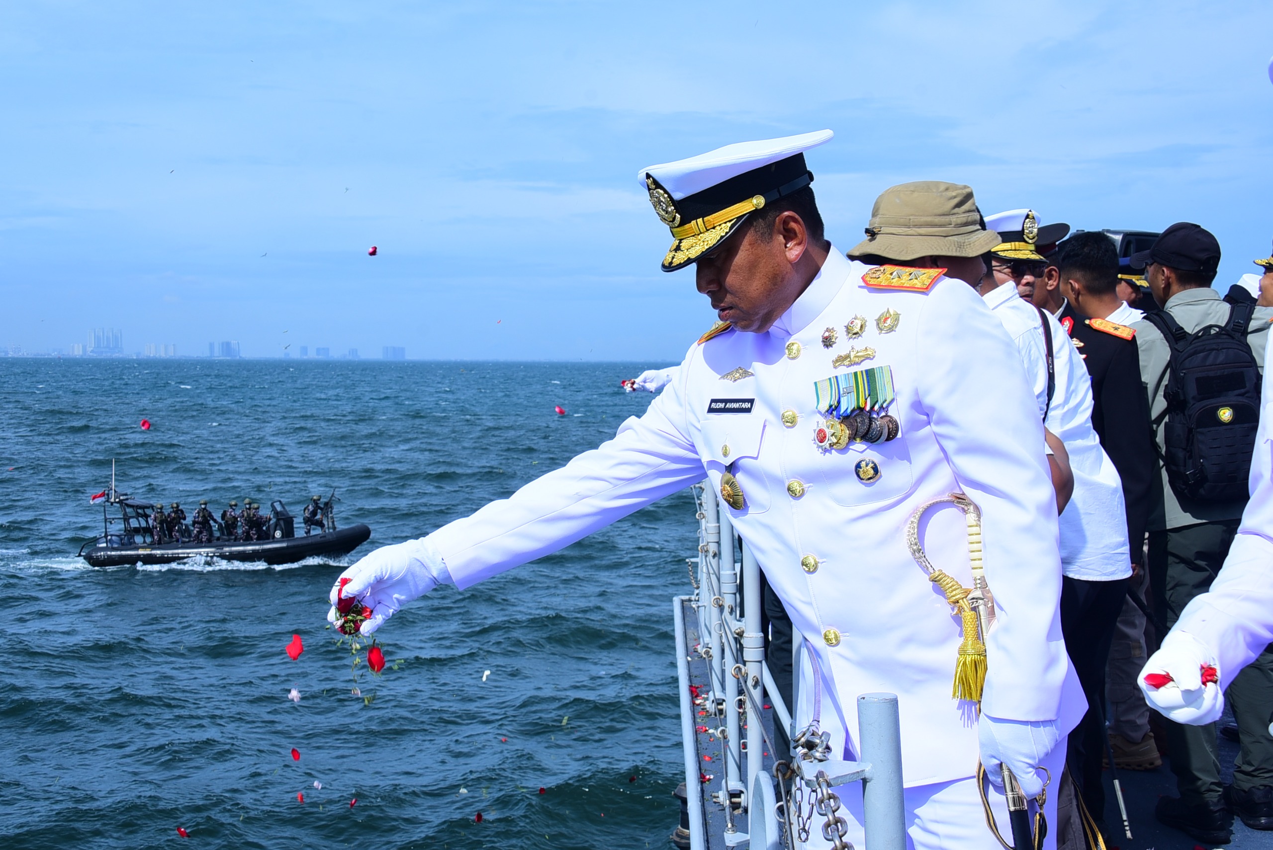 Upacara dipimpin langsung oleh Kepala Staf Angkatan Laut (Kasal) Laksamana TNI Dr. H. Muhammad Ali, S.E., M.M., M.Tr.Opsla. selaku Inspektur Upacara, dan dihadiri oleh para pejabat MPR RI, TNI-Polri, serta tamu undangan dari berbagai instansi pemerintahan. Dalam suasana haru dan khidmat, bunga-bunga dilarungkan ke laut melambangkan ungkapan terima kasih yang tak bertepi atas jasa dan pengorbanan para pahlawan. Tabur bunga di laut bukan sekadar tradisi, tetapi juga simbol penghormatan dan pengingat, bahwa kemerdekaan yang dinikmati hari ini lahir dari perjuangan yang tak kenal pamrih.