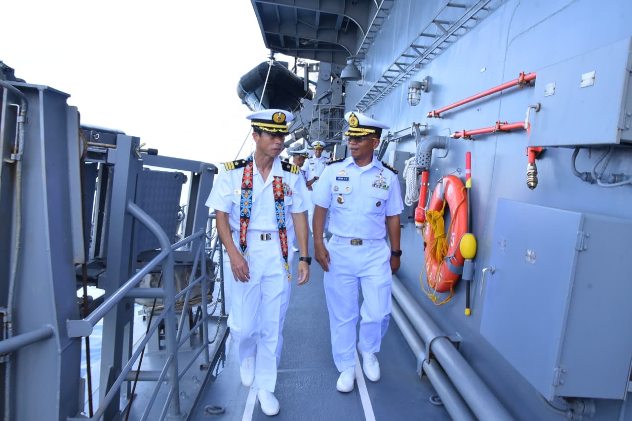 Di awal kedatangannya, mereka disambut dengan pengalungan manik-manik khas Kalimantan dan tarian Ronggeng Nyentrik (Jaipong) yang berasal dari Jawa Barat. Usai penyambutan, Asops Dankodaeral III didampingi Aslog, Kadisharkan, Kadispen dan delegasi dari Kodaeral III melanjutkan kegiatan dengan ship tour berkeliling kapal perang dengan nomor lambung 102 ini.