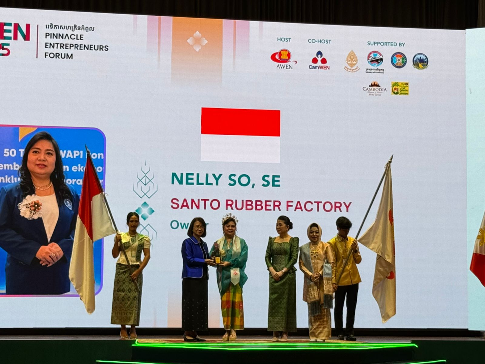 Pada ajang AWEN Award 2025 di Cambodia, 21 November 2025, Indonesia diwakili oleh 18 perempuan inspiratif, salah satunya Nelly So, SE, Owner Santo Rubber yang aktif dalam pemberdayaan perempuan pelaku usaha. Kehadirannya menjadi kesempatan untuk memperluas kolaborasi sekaligus mengenalkan potensi besar perempuan Indonesia di panggung ASEAN.