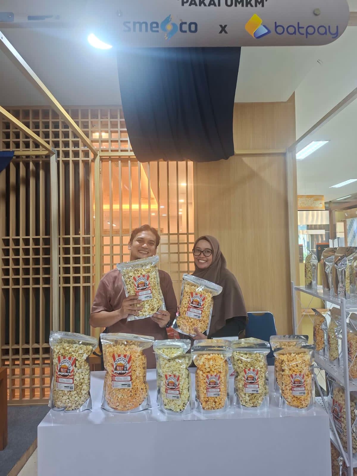 KOMPASSINDO.COM, JAKARTA – Kerja keras, kreativitas, dan konsistensi menjadi kunci perjalanan Keypops Popcorn, usaha popcorn rumahan yang kini berkembang pesat dan digemari berbagai kalangan. Ardhi Nurcahya, owner Keypops Popcorn, didampingi sang istri Ajeng, hadir sebagai salah satu peserta terpilih dalam gelaran Kementerian UMKM Smesco bertajuk “Pakai UMKM”, Smesco × Batpay yang berlangsung selama satu minggu, Kamis (27/11).