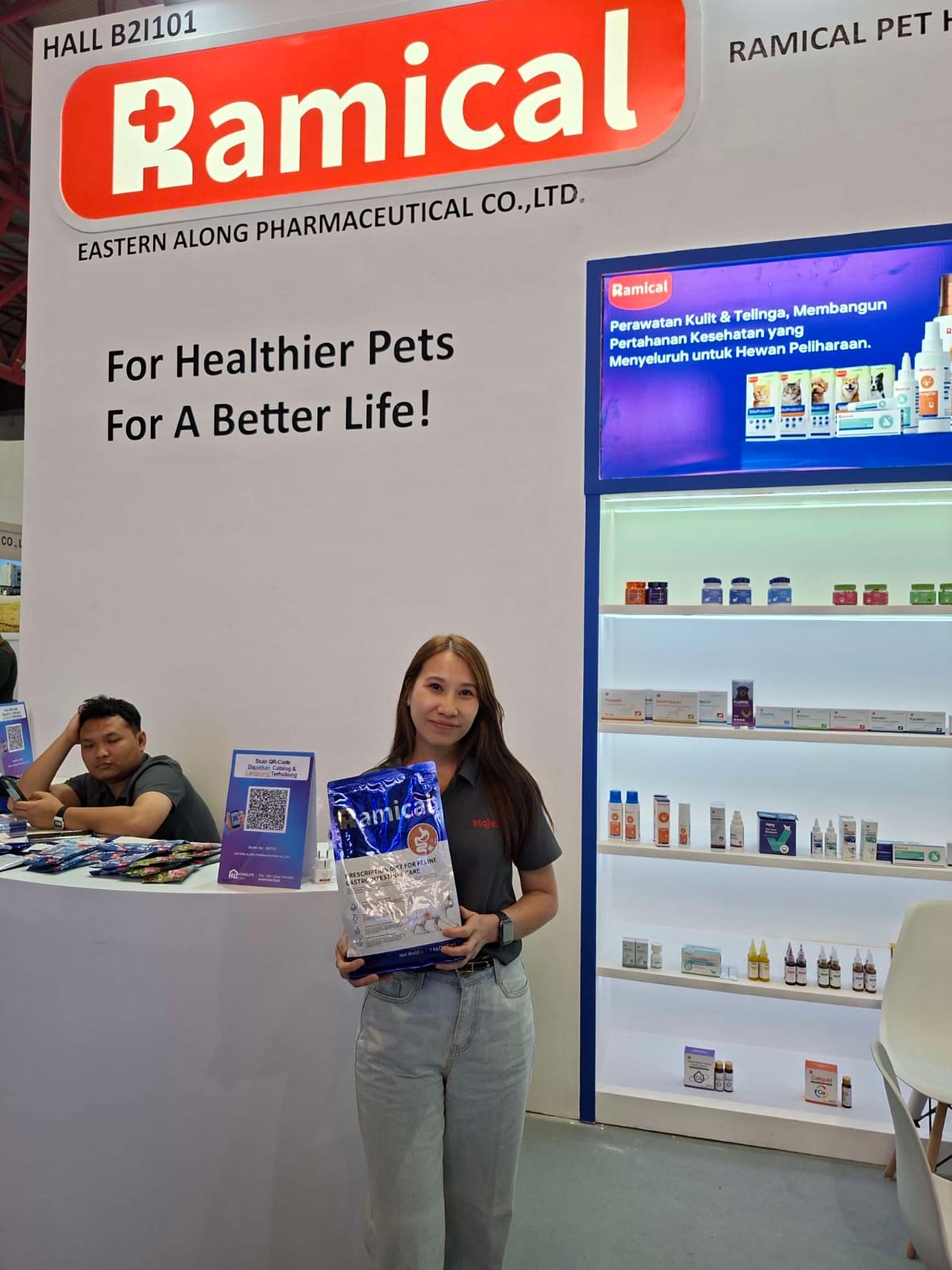 Training Manager Ramical dan Majes, drh. Elvinkan Ruth, dalam wawancara dengan awak media di booth Hall B nomor B21201, Rabu (26/11), menjelaskan bahwa Ramical Pet Health Technology Co., Ltd dan Eastern Along Pharmaceutical Co., Ltd resmi mulai memasarkan Ramical di Indonesia pada November 2025. Meskipun baru hadir di pasar nasional, Ramical membawa formulasi nutrisi prescription diet berbasis protein hypoallergenic serta tambahan triptofan dan bahan pendukung manajemen stres, sehingga cocok untuk hewan yang membutuhkan perhatian khusus.