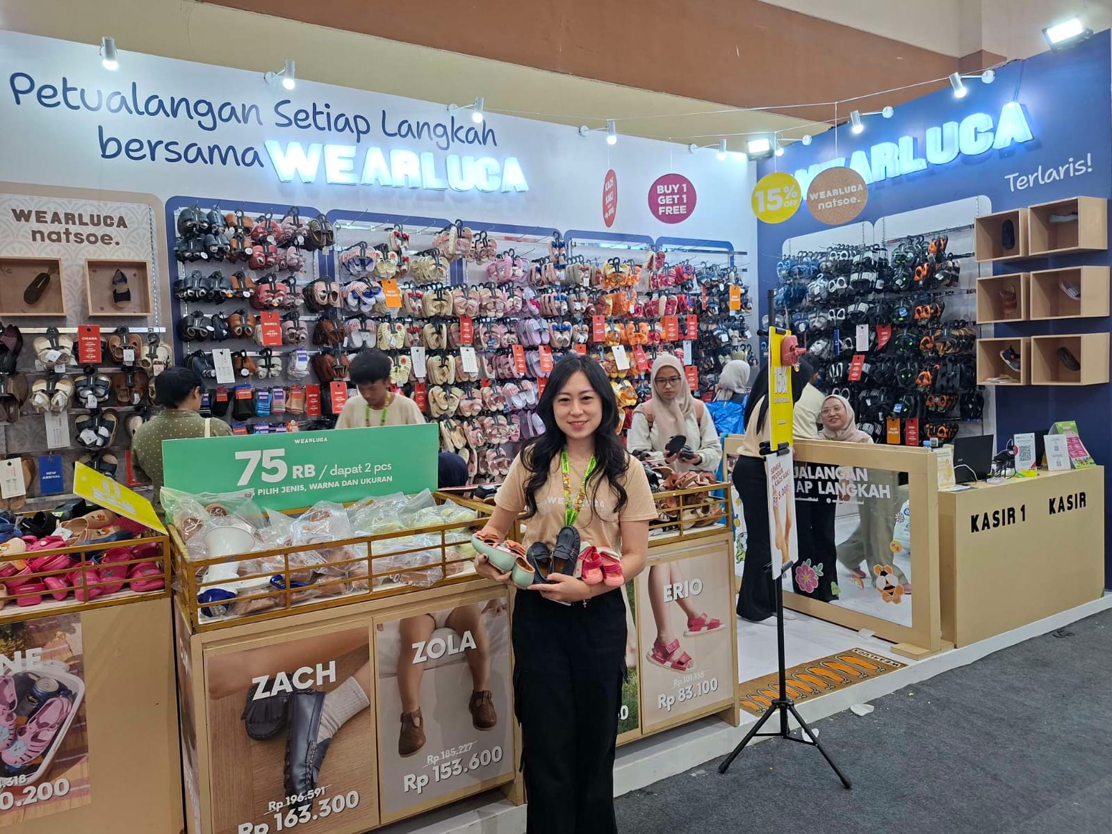 Dalam pameran kali ini, WEARLUCA memberikan sejumlah promo menarik. Semua produk mendapatkan diskon 15 persen, dan setiap pembelian mulai Rp5.000 sudah bisa mendapatkan kaus kaki. Selain itu, tersedia harga spesial beli 1 gratis 1 mulai dari Rp75.000. WEARLUCA juga memboyong produk kaus kaki sebagai pelengkap koleksi alas kaki anak.