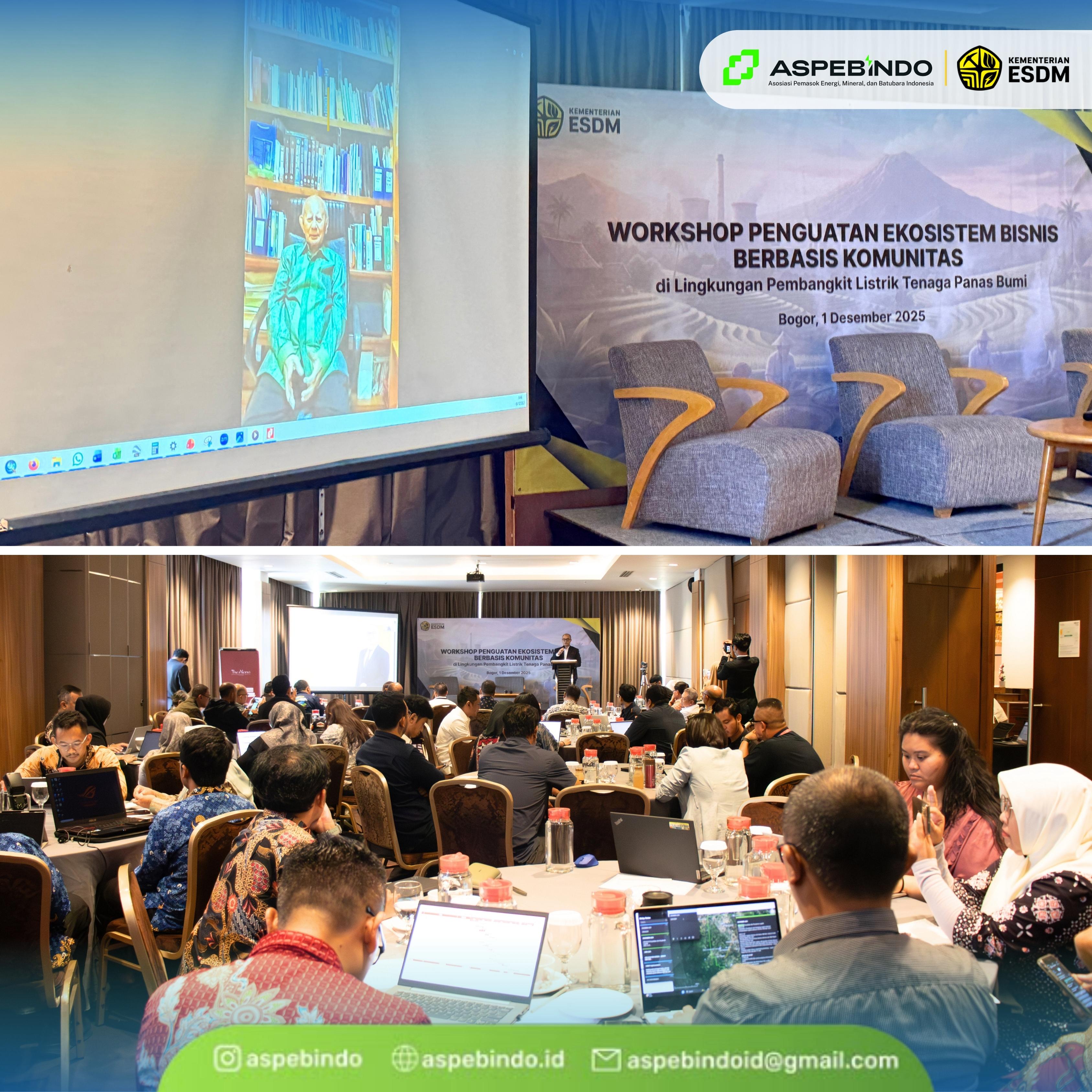 KOMPASSINDO.COM, Bogor, Jawa Barat – 1 Desember 2025, ASPEBINDO (Asosiasi Pemasok Energi, Mineral dan Batubara Indonesia) Bidang V Transisi Energi Baru Terbarukan, Lingkungan Hidup dan Kehutanan bersama Kementerian Energi dan Sumber Daya Mineral (KESDM) melalui Direktorat Jenderal Energi Baru Terbarukan dan Konservasi Energi (EBTKE) menyelenggarakan Workshop Penguatan Ekosistem Bisnis Berbasis Komunitas di Lingkungan Pembangkit Listrik Tenaga Panas Bumi (PLTP) di The Alana Hotel & Conference Center, Bogor. Kegiatan ini menjadi wadah kolaborasi antara pemerintah, akademisi, BUMN, pelaku bisnis energi baru terbarukan, komunitas lingkungan hidup, dan media untuk memperkuat peran masyarakat dalam ekosistem bisnis berbasis energi panas bumi. Hal ini sejalan dengan posisi Indonesia sebagai produsen panas bumi terbesar di dunia dan komitmen menuju Net Zero Emission 2060