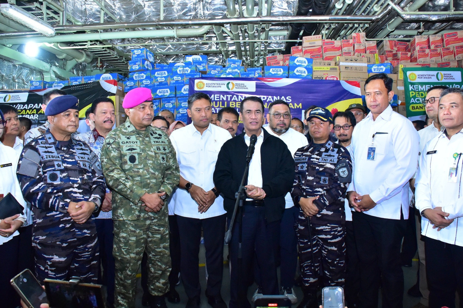 Berita Kolinlamil TNI AL, 5 Desember 2025 ——- Kegiatan Menteri Pertanian (Mentan) RI Dr. Ir. H. Andi Amran Sulaiman, M.P. dalam rangka peninjauan dan penyerahan bantuan untuk korban bencana di wilayah Sumatra berlangsung di Markas Komando Lintas Laut Militer (Kolinlamil) Jum’at (5/12). Bantuan tersebut selanjutnya akan diberangkatkan menggunakan KRI Banda Aceh-593, salah satu unsur Kolinlamil yang dikomandani Letkol Laut (P) Yanuar Rizky Widjaya, M.Tr.Opsla., dan disiapkan sebagai kapal angkut utama dalam distribusi bantuan ke daerah terdampak.